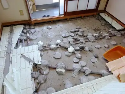 ネダフォーム(発泡スチロール)が割れてしまっていて床と畳が陥没。