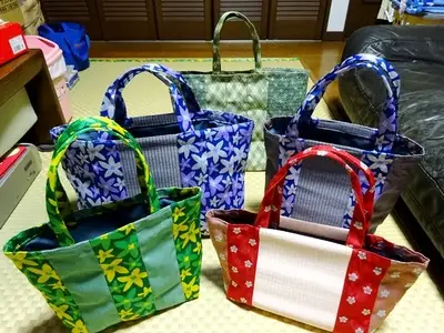初めて作った畳縁バック、きちんとした製品レベルには程遠いですが自分でも作る事が出来た喜びでちょっと満足した畳縁バック製作でございました。