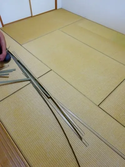 弟と二人、きたろう畳の撤去から採寸完了までたっぷり1時間掛かります・・・これでも慣れたので早くなったほうです