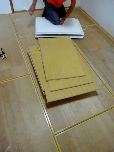 使用するのはフィルム素材プラスチック系の薄畳床、エコパネル畳床15㎜厚仕上がり&熊本産糸引き畳表 ( 津田さんの畳表、夕凪 ) です。
