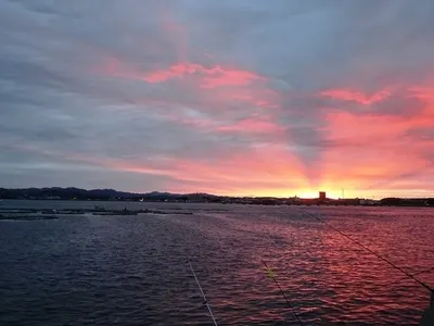 息子と共に、近くの乙浜漁港で夕マズメ、青物狙い。