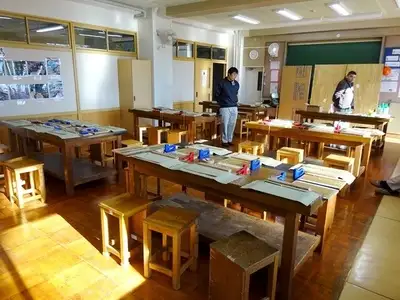 開催されたのはお隣の白井市立南山小学校にて5年生の児童95名が畳、左官、和菓子、3職種に分かれ、それぞれの課題に挑戦です。