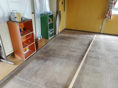 工場広間(32畳間)の採寸をすまし、施工開始。