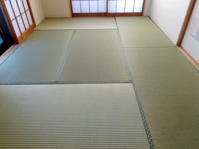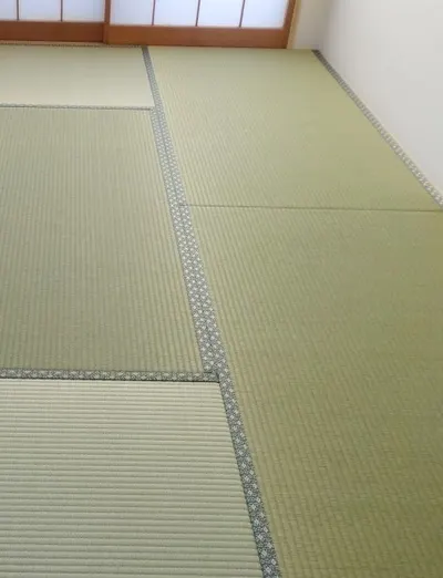 一番判りやすい特徴は、写真右側の畳のように縦方向の畳が2枚並ぶ真ん中に縁がある事と隣に並ぶ畳との間の縁が1本である事です。