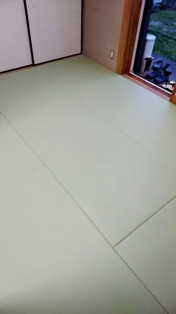 そんなペット専用わんにゃんスマイル畳、カラーグリーン・ヘリ無し仕様の施工例でございました。