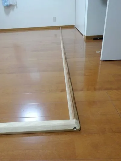 ※木枠を四方に組まず、L字やコの字で組む場合、畳が隙間無くズレないようにキッチリ納めるには木枠の固定(ビス止め)が必須になります