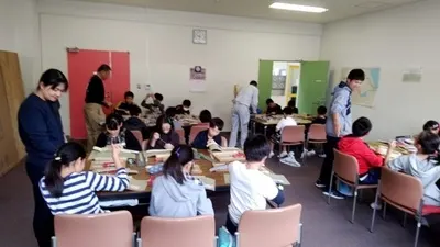 5年生児童148名が畳、和菓子、左官、造園、タイルの5職種からそれぞれが希望した職種に挑戦です。