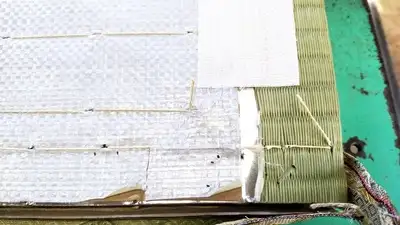 もちろんここまで薄い畳ですので畳表の逢着は出来ず、畳縁を縫い付ける平刺しだけ逢着加工で後は全てタッカー工法(ホチキス留め)とテープ貼でした。