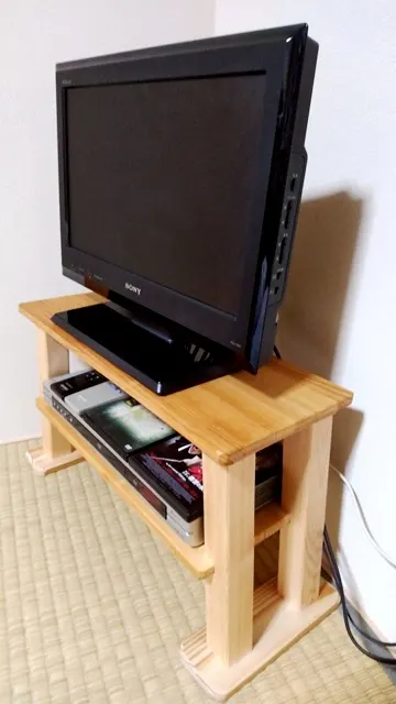天板と中板は集成材で蜜蝋の艶で買った物みたい!