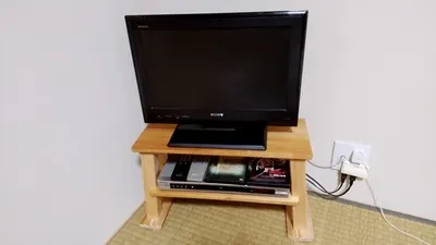 テレビとDVDプレーヤーを退かすと以前本棚として使っていたビス穴の跡が顔を出します(苦笑)