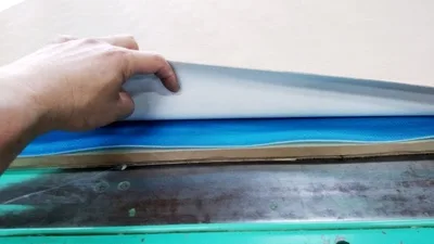 修正が済んだら、当店オリジナル施工のブル―マット(クッション)を追加です。