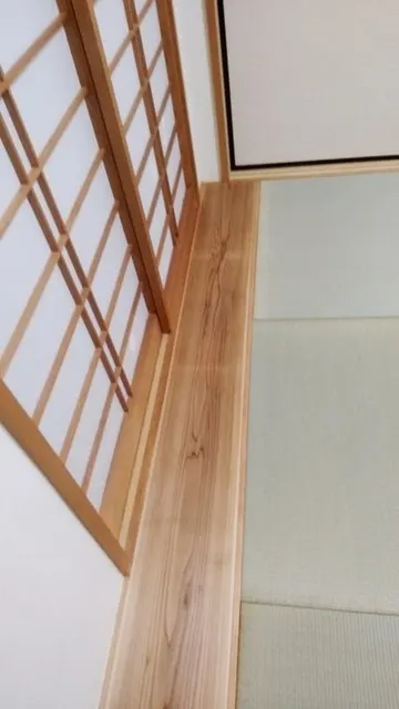お見積り時、普通の6畳間より小さい為、片側に巾板を入れ四畳半サイズにする事をご提案。