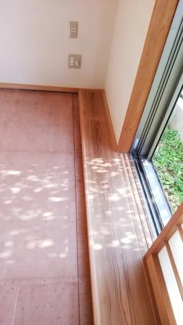 畳を引き上げ床板の清糟縺A直ぐに巾板の加工です。
