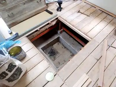 フロア部分の下地が終わったらすぐに掘り炬燵の撤去作業