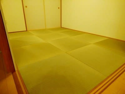 本日納めました市内マンション和室、ヘリ無し半畳市松敷き施工です。