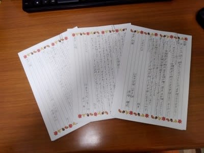 後日、学年主任の先生が子供達のお礼状(感想文)を持ってきてくれました。