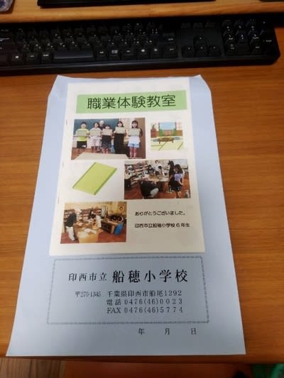 先日、夜なべを終え自宅に戻ると6月に行われた印西市立船穂小学校での【ものづくりマイスター魅力発信講座】のお礼の手紙を先生が持ってきてくれたと渡されました。