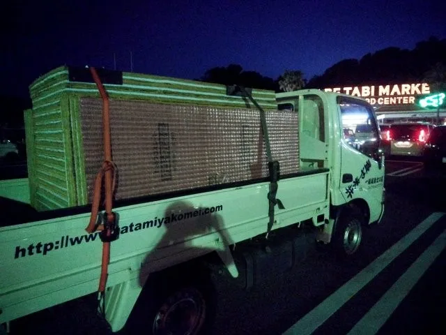 今夜は雨の心配が無いという事で本日施工した畳の納品後、お客様のお見積りを済ませ夕方5時から畳床を引き取りに君津市までトラックを走らせました。