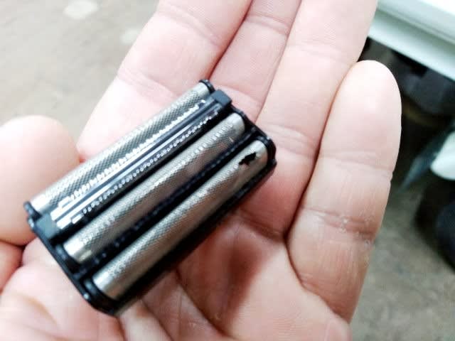 電気シェーバー 2022.09.02 毎日使っている電気シェーバー。 朝、髭を剃っていると痛みが。 鏡を見ると数か所から血が出ている。 電気シェーバーを見ると・・・。 外刃に穴が! ヒリヒリと痛いはず。 内刃が直接肌にあたって切れていたのだ(怖) 夜すぐに電気屋さんへ新しい外刃を買いに行きました。 なんでも点検は必要だと感じた出来事でした。 #髭剃り #怖い #外刃 #気を付けよう