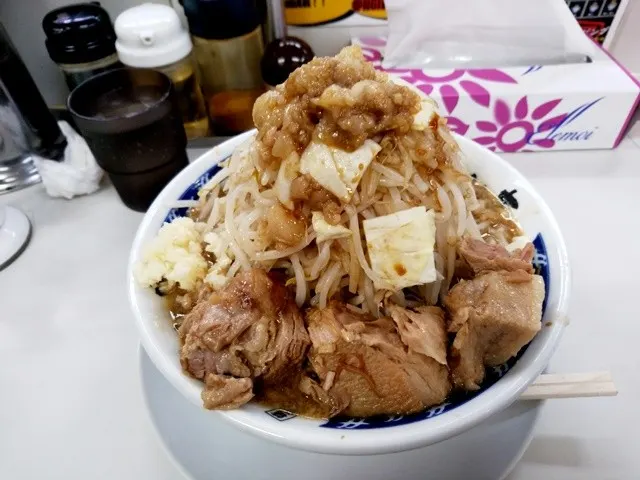 らーめん(醤油)野菜増し、ニンニク、味濃いめ、油多め(価格改定後)