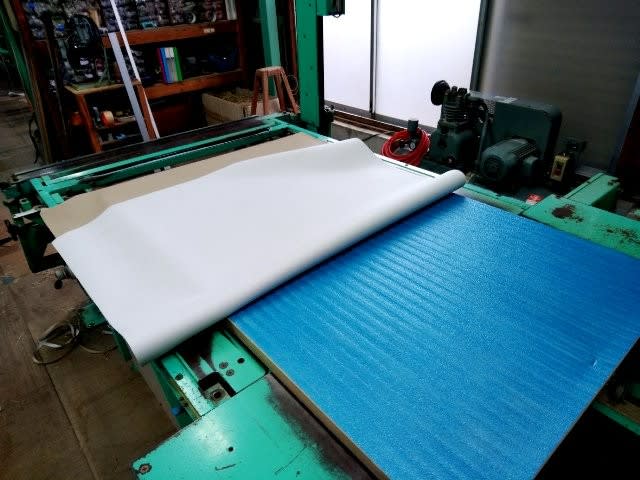 今回、新畳に入れ替え工事となり畳床は特注厚の30㎜(33㎜仕上がり)ケナフボード1型にブルーマット(クッション材)をプラス