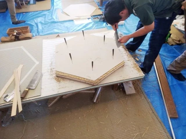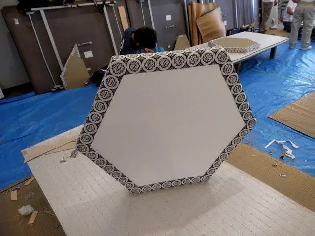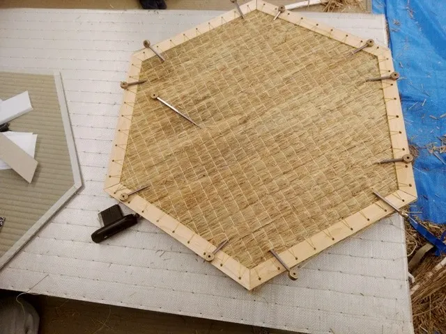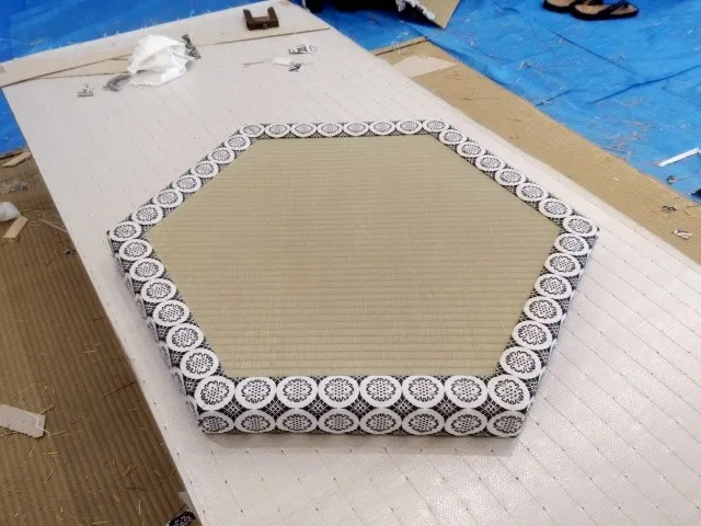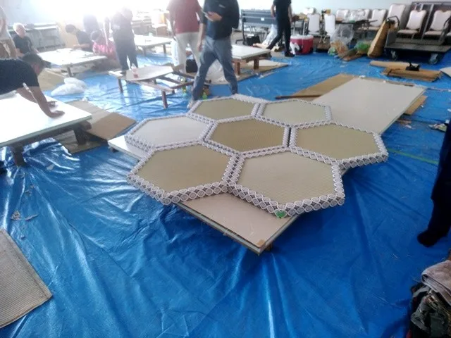 東京の金井畳店さんが幹事を務め会場は浅草台東区民会館にて六角形の厚畳作りです。