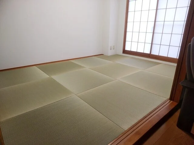既存の6畳間の畳を処分し熊本産目積畳表を使用したヘリ無し半畳へ入れ替えをしました。