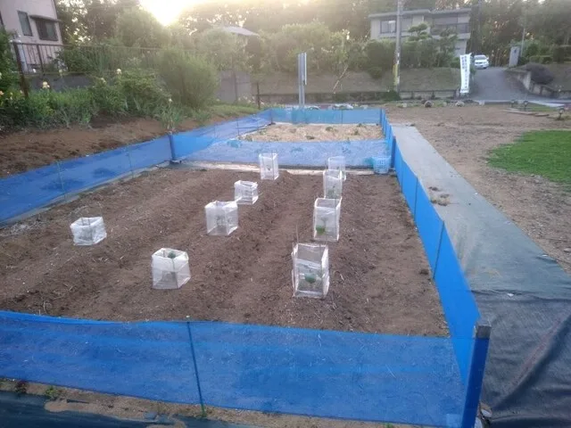 ナスとピーマン、トマトは植えたばかりなので過保護に育てます(笑)