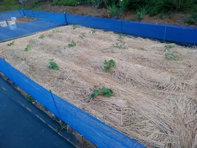 ウリ科の畑には畳屋ならではの敷藁をたっぷり使用