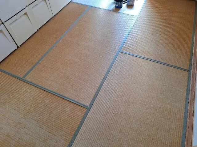 今回もパネル式のきたろう畳の撤去から始め今回は通常のヘリ付畳の施工でなく簡易型のヘリ無し半畳薄畳への入替工事を行いました。