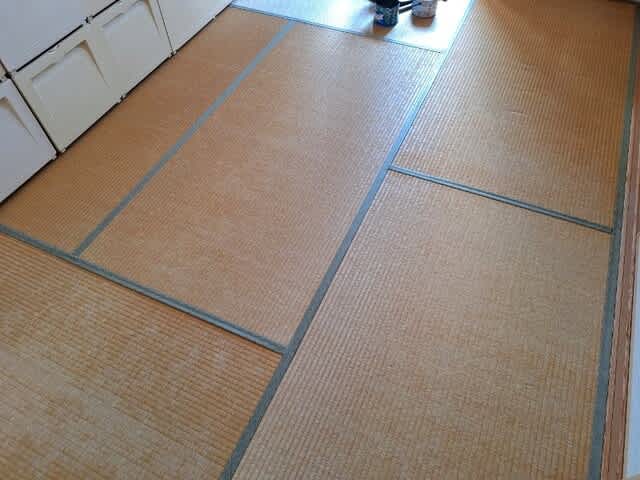 今回もパネル式のきたろう畳の撤去から始め今回は通常のヘリ付畳の施工でなく簡易型のヘリ無し半畳薄畳への入替工事を行いました。