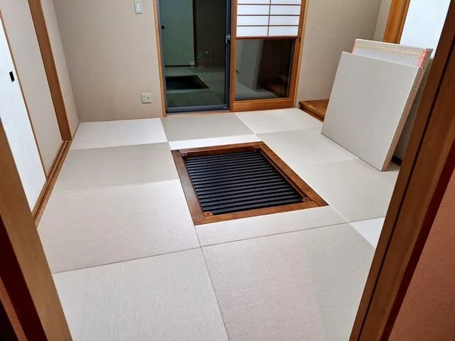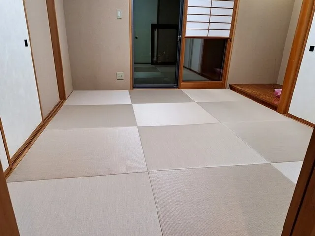 そんなヘリ無し半畳市松敷き、セキスイ美草目積カラーモカベージュ仕様の入替工事で御座いました。