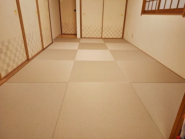 ご注文頂きましたのはダイケン清流カラー灰桜色を使用してのヘリ無し半畳入れ替え工事。