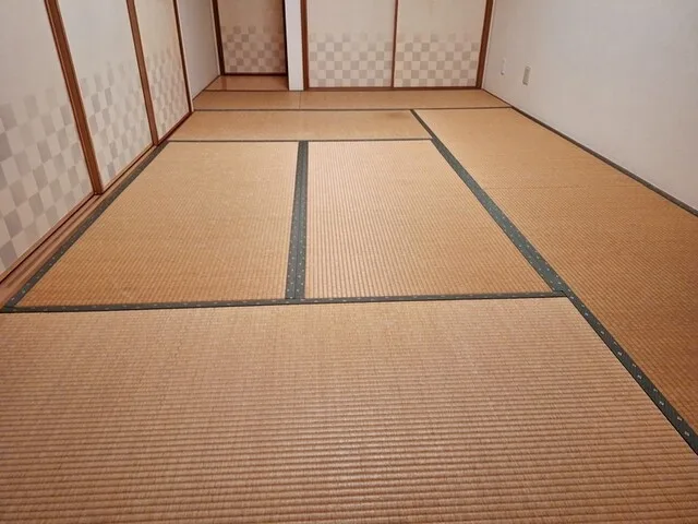 和室入り口側1枚が3寸程大きくそのぶん手前が5寸程詰まっており大きさの違いがあまり感じられない様に寸法の割り付けをしています。