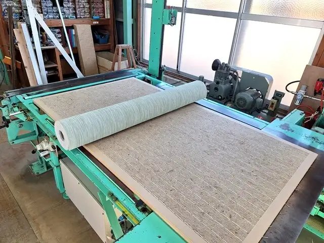 塩ビ素材をジャガード織で製織、24柄ありその中のFelice(フェリーチェ)F-001を使用した24㎜厚薄畳ヘリ無し仕様です。