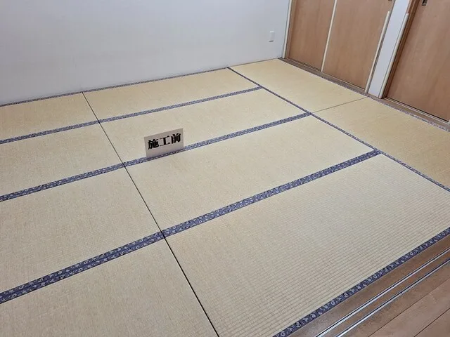今までは熊本産畳表を使用した通常の表替え工事でしたが経年劣化のため今回は新畳への入替工事に。