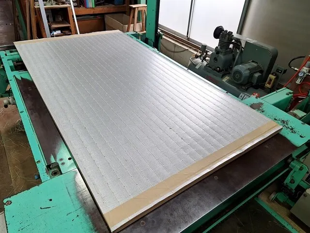 工場に戻っている途中で仕上がりました!と村上さんから電話が入りお互いに真ん中の安食で畳床の引き取りに向かい午前10時施工開始。