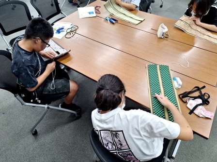 初めて縫う畳表の硬さに苦戦しながらも皆頑張って進めます