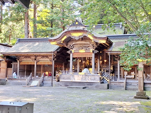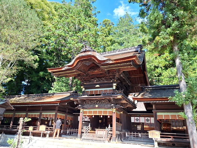 本宮は改修工事中で丁度、建築板金の職人さんが銅葺き屋根の作業をしており少しの間作業を見ておりました。その他いくつかのお社の改修工事が済んでおり桧の香りを感じとても綺麗でした。