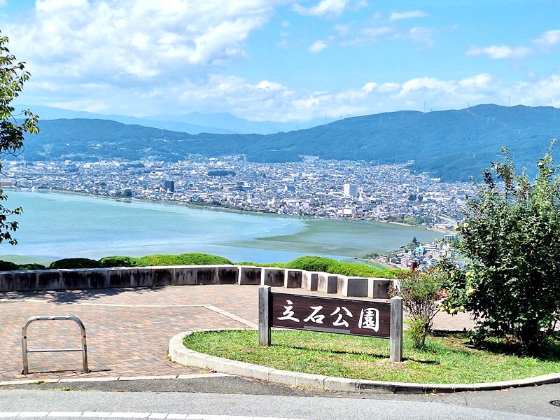 上社を後に下社へ行く前に諏訪湖が見渡せる景観地の立石公園へ。