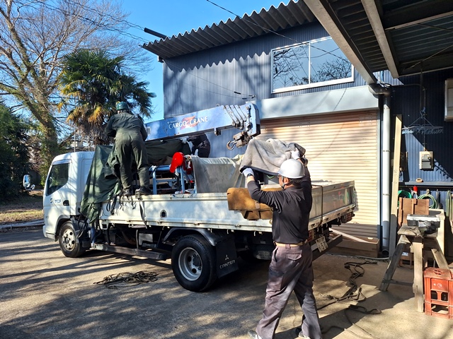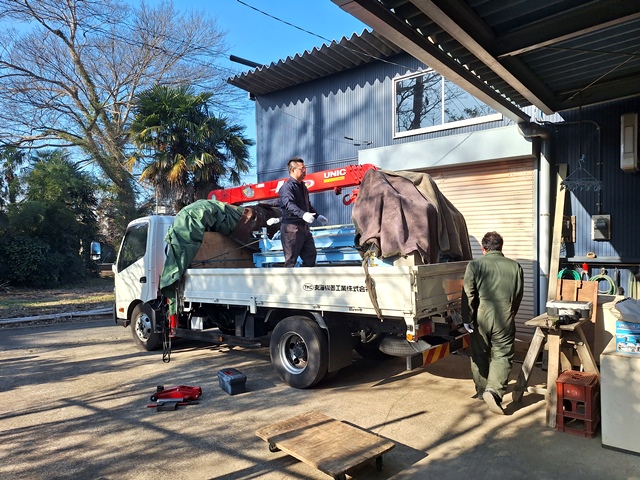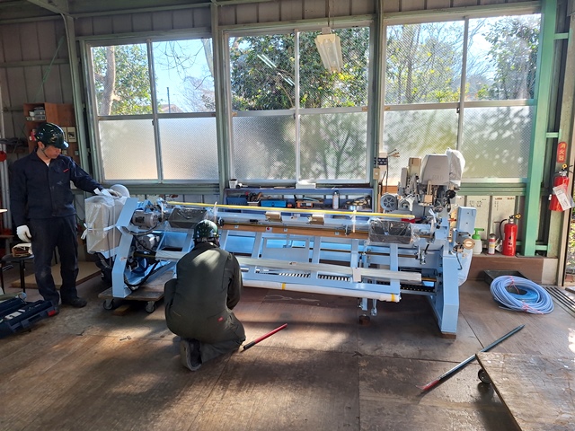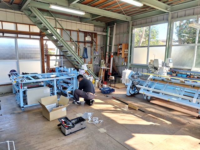 本日は朝から畳機器メーカー東海機器工業㈱さんが畳製作機械2台の入替えに来てくれました。