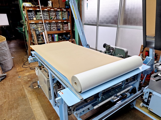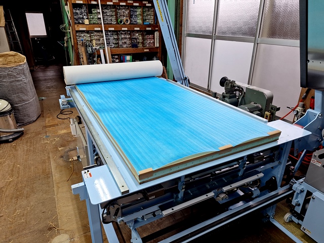 寸法を確認しヘリ無し仕様にするための畳床の加工と寸法調整に縫い止め。