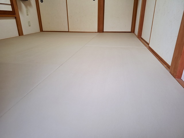 そんな【わんにゃんスマイル畳】ダークベージュを使用したヘリ無し仕様の畳表替え工事施工例で御座いました。