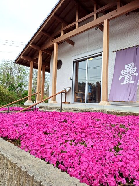 店(入れ口前)の芝桜が満開で見頃を迎えています。