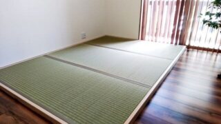 こちらは本日お世話になりました隣町のお客様の施工例です。もともと和室だった6畳間をフローリングに張り替え使用していたものの やはり畳の上でゴロンとしたいという事で洋間に敷く畳をご相談頂きました。見積りにお伺いし周りの巾木の高さを確認すると1...